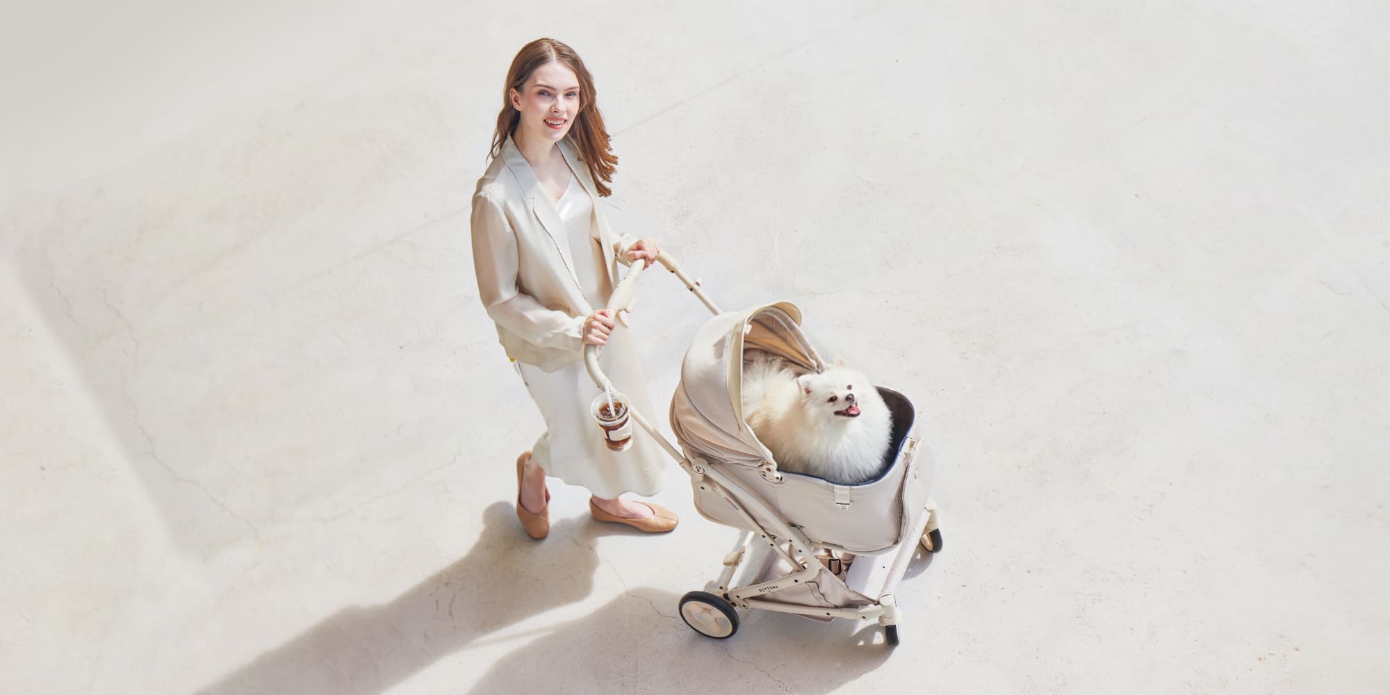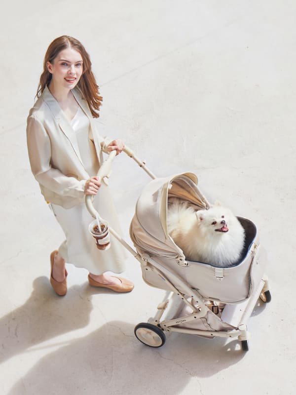 TERRAは、同クラスのカートより10%広い、ゆとりの快適空間が魅力のペットカートです(15〜25kgの中型犬に最適)。お散歩シーンに合わせて2つのモデルからお選びいただけます。街乗りに最適なシティモデルは、驚くほど静かなPUホイールを採用し、舗装路でも周囲に気兼ねなく快適なお散歩を実現。一方、本格的なエアタイヤを装備したアウトドアモデルは、公園の草地や砂利道でも抜群の走破性を発揮し、あらゆるお出かけシーンで安定した走りを提供します。