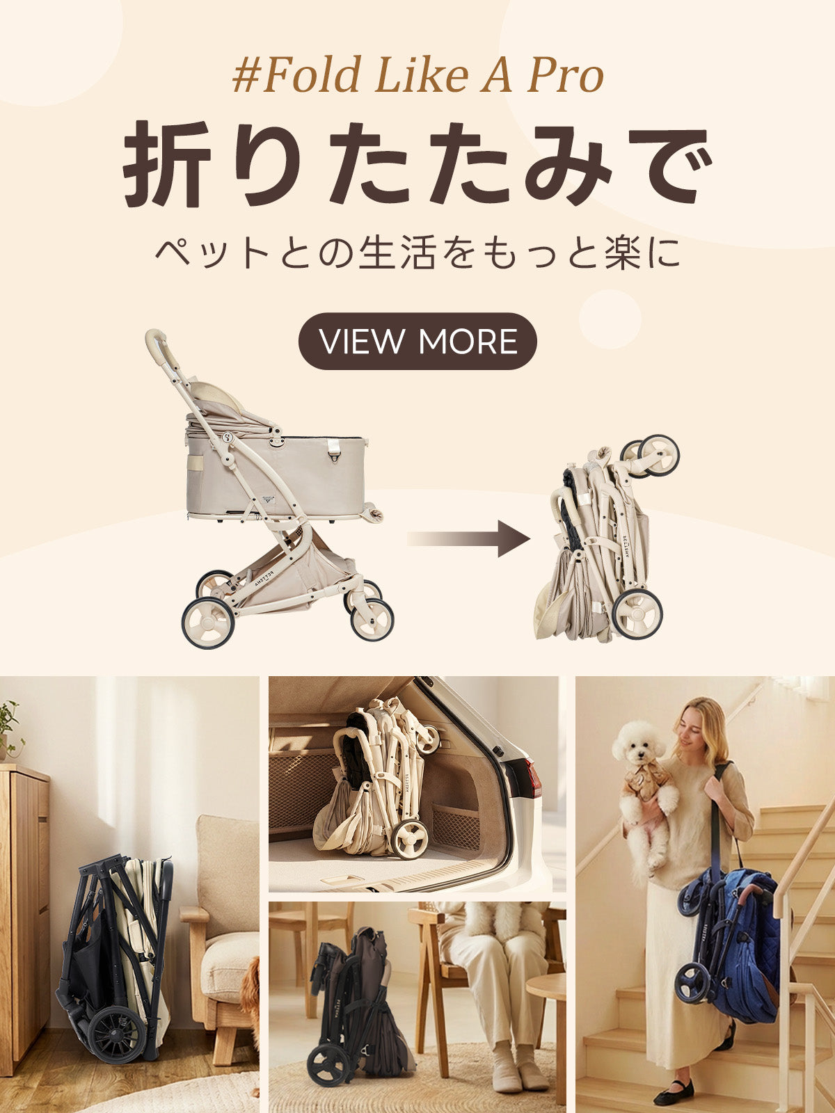 小型犬や中型犬、愛猫とのお出かけに便利な折りたたみ式ペットカートの写真集です。柴犬との公園散歩や旅行、多頭飼いにも対応し、街歩きや通院も快適。安全性と快適さを兼ね備えたペットカートで、ペットとの思い出づくりをより楽しくします。