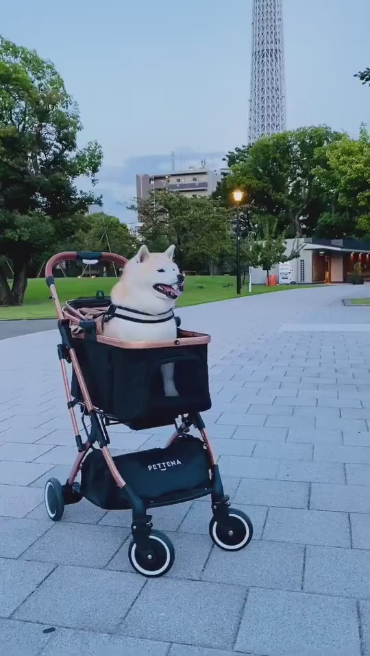 PETTENAの定番モデル「KNIGHT」は、軽量かつ高い耐久性を誇るアルミ合金フレームを採用。 ワンタッチで折りたためるだけでなく、ペットカート・キャリーコット・ドライブボックスの3WAY仕様で、 ご利用シーンに合わせた使い方が可能です。 どんなお出かけにもフィットする、シンプルで頼れる一台です。