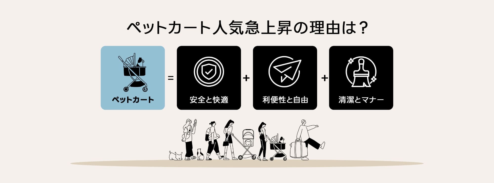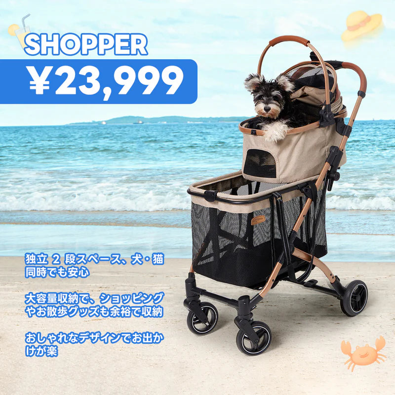 ペットカートがあれば足腰が弱っている高齢ペット、疾患で歩けないペットやワクチン・予防接種を受けたばかりのペットの移動が楽になります。いつでも外に出て新鮮な空気を胸いっぱい吸えます。