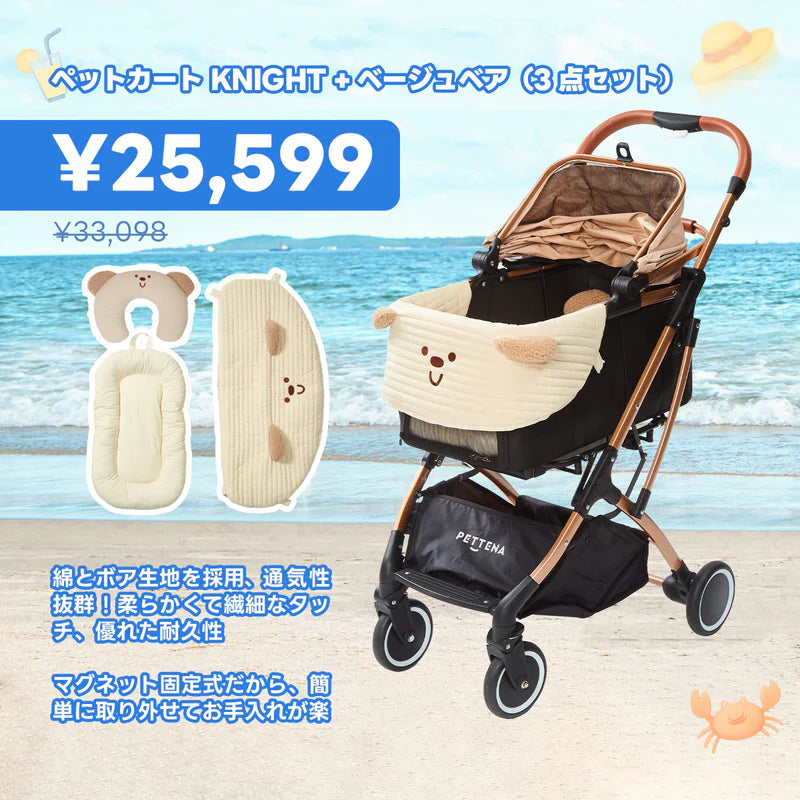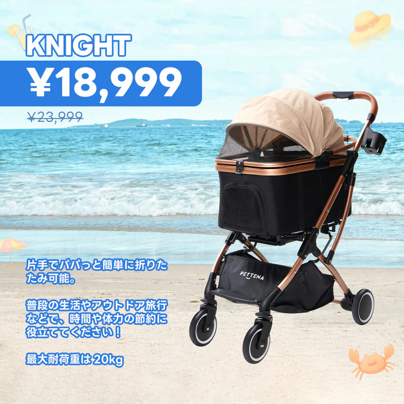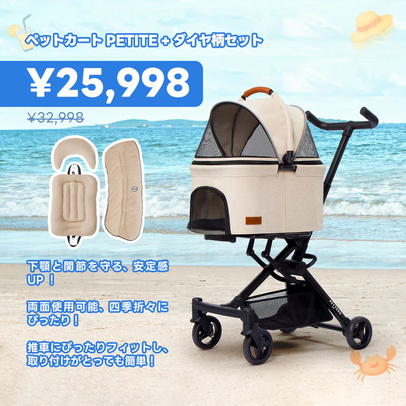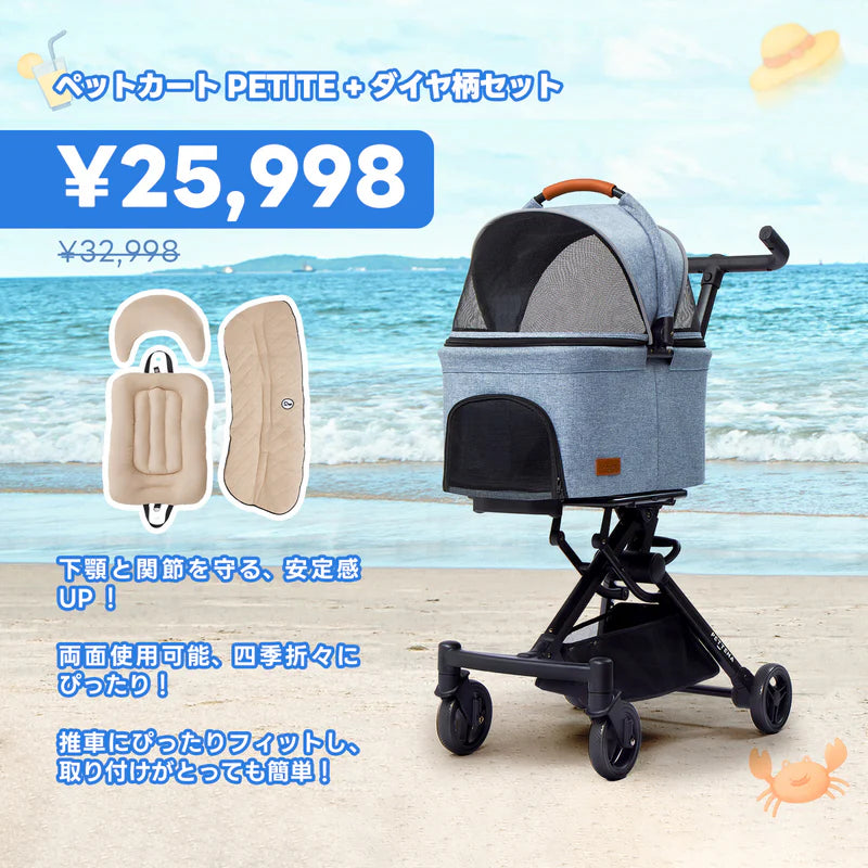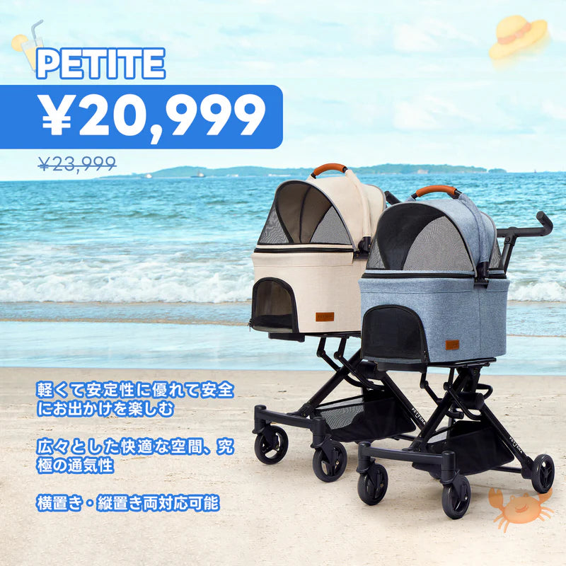 Tips: 通常ペットカートには色んな体系や体重の応じて、小型、中型と大型の3つのサイズがあります。小型カートは小型犬、猫など、中型カートは中型犬や大きめな猫、そして、大型カートは大型犬用になります。