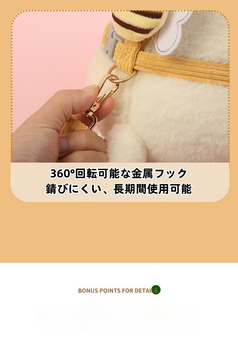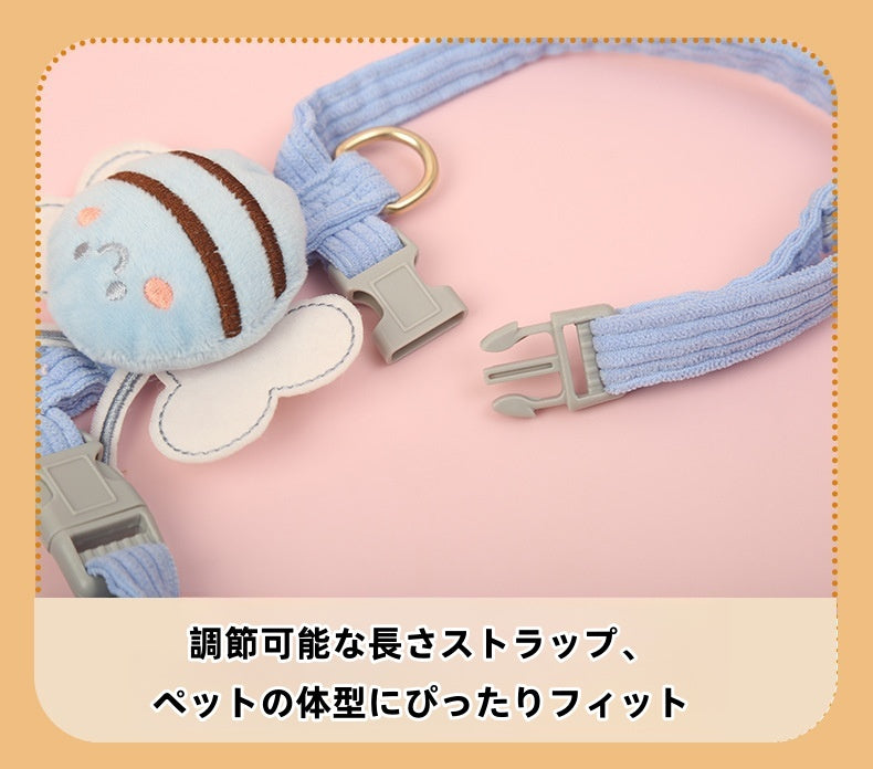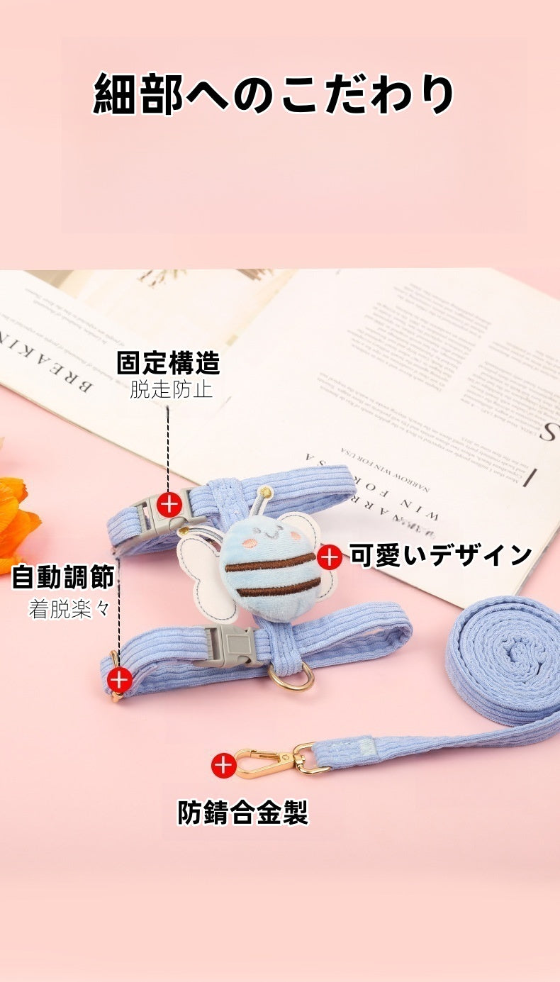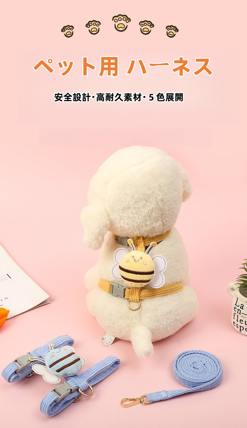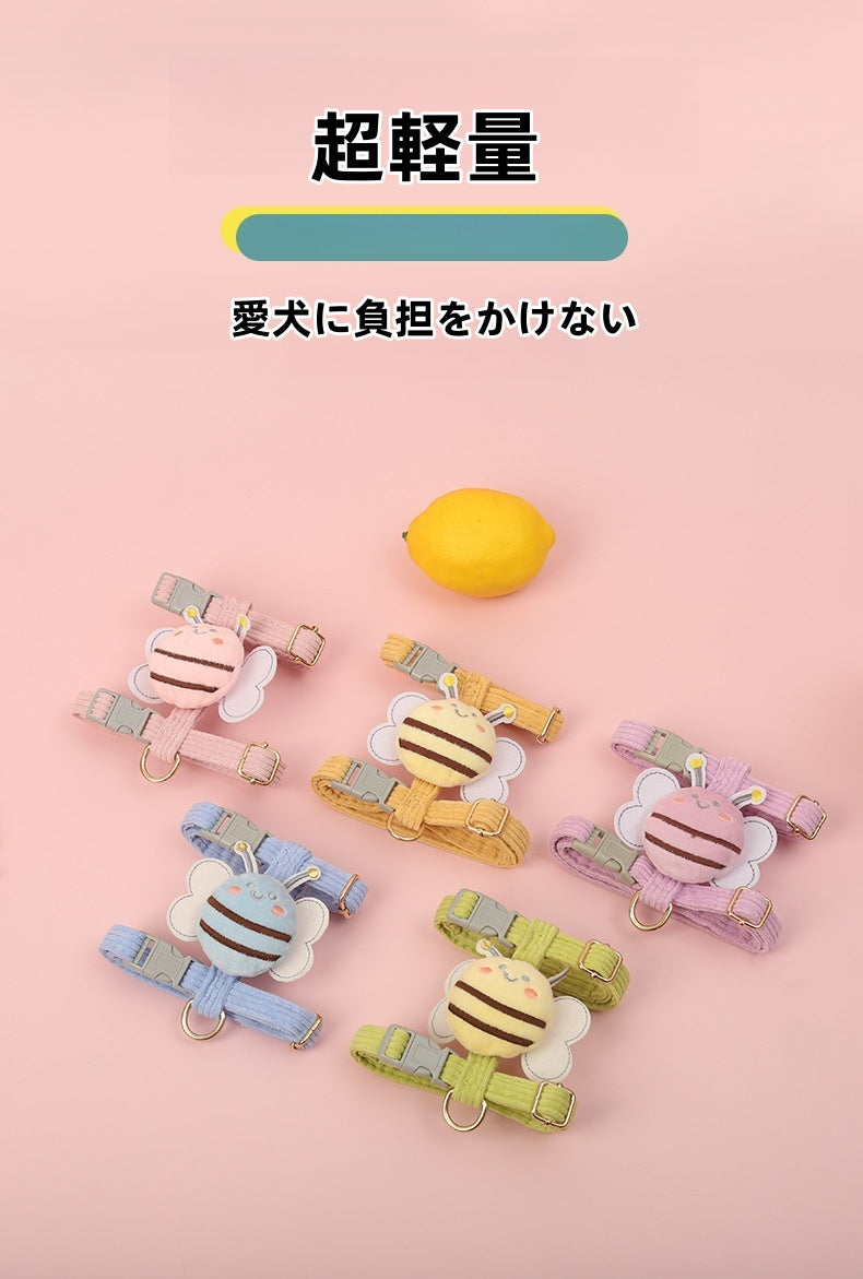 蜜蜂デザインの可愛い小型犬用ハーネス。通気性と安全性を兼ね備え、S~Lサイズで5~15kgの犬に最適。胸囲・首周り調整可能で散歩が楽々。