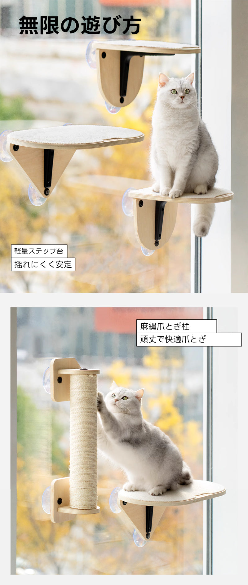 ・本能を刺激 : 縄張り監視・狩猟欲・日光浴でストレスフリー!
