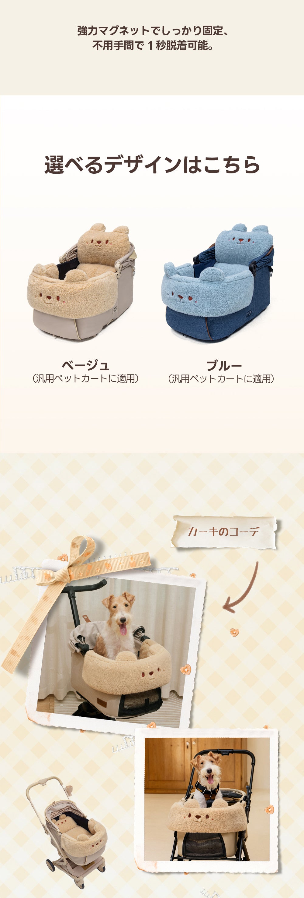 あごのせクッションは磁石が付けているからペットカートに取り付けるのは簡単です。ペットのあごのせや前足を上手に乗せて、移動の快適さや楽しさを体験するです。 - 【水洗い可】