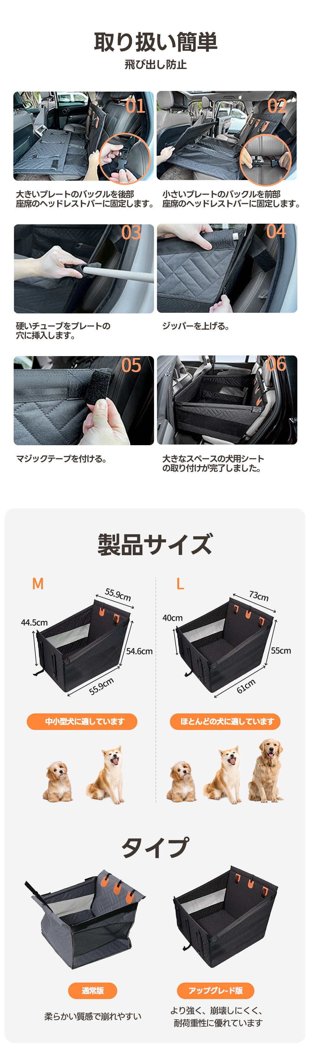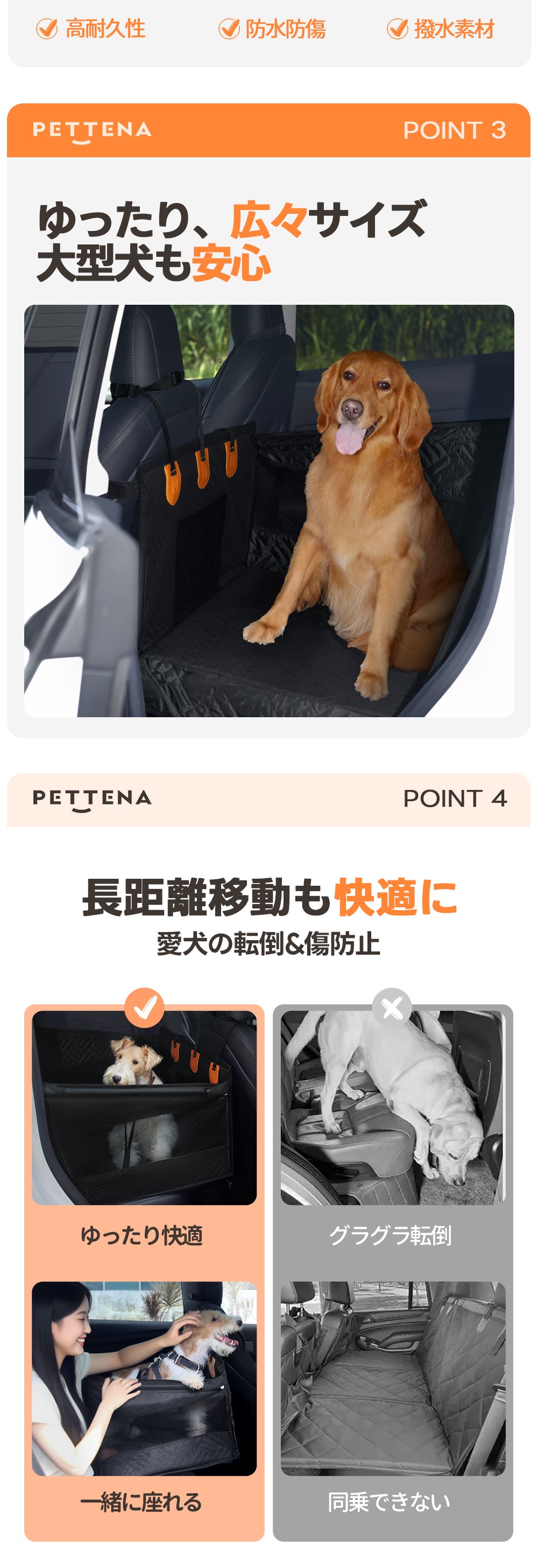・転倒防止、安全性がアップ!犬ドライブシートは後部座席のスペースを拡張します。大型犬用カーシートは、犬に広くて快適な休憩スペースを提供します。