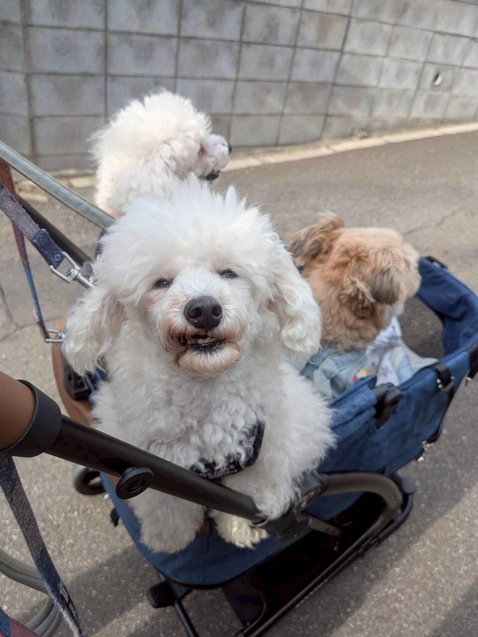 - 静音EVA大型タイヤで段差や砂利道も安定走行。飼い主さんも押しやすく、毎日の散歩から遠出まで活躍。