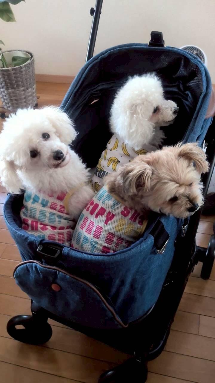 コーギーや柴犬、ビーグルなど10kgを超える中型犬種やポメラニアン、プードル、チワワなど小型犬種に対応。2頭でフィットするサイズ感。