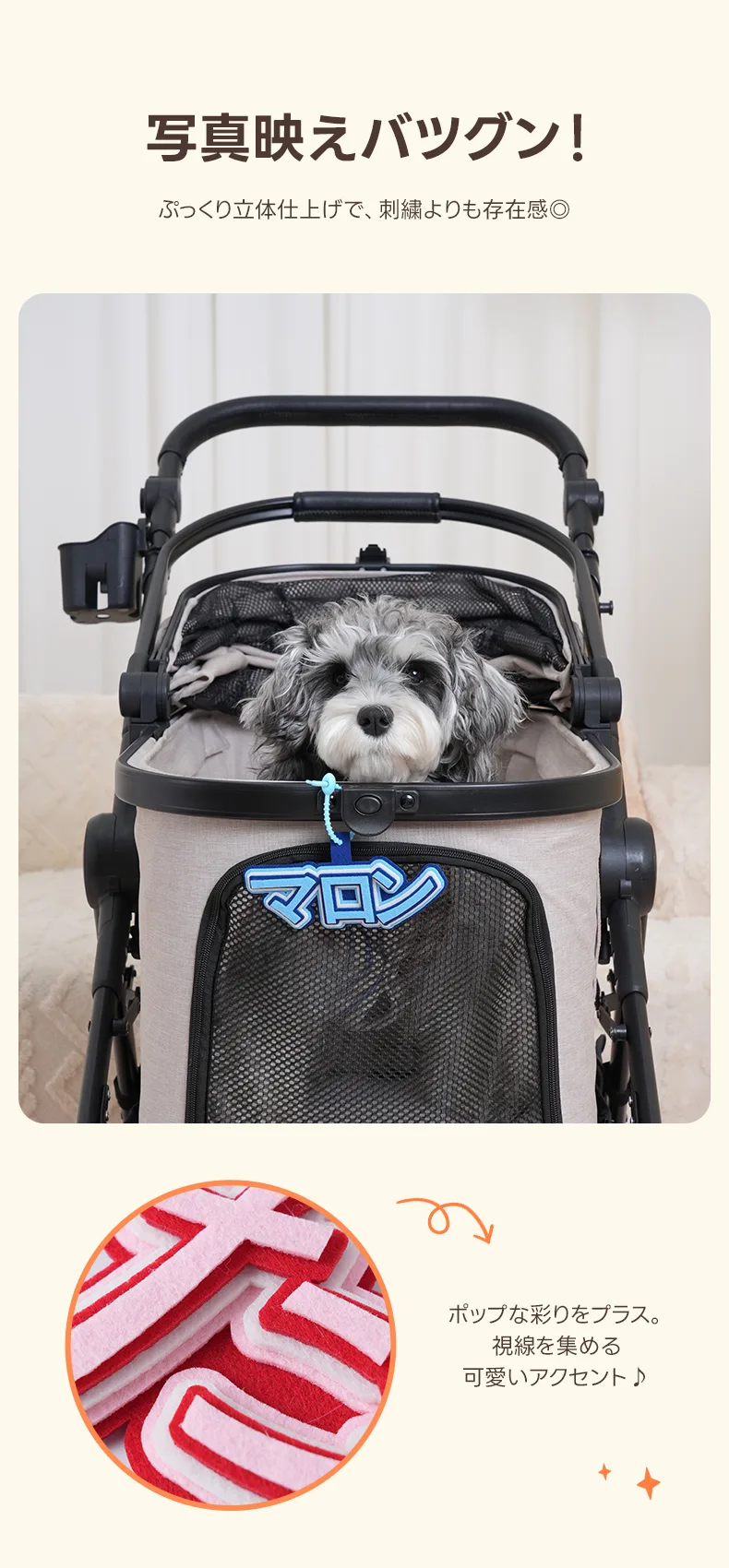 PETTENA ペットカート用 フェルトお名前チャーム