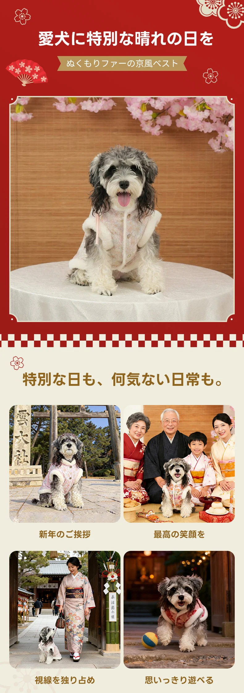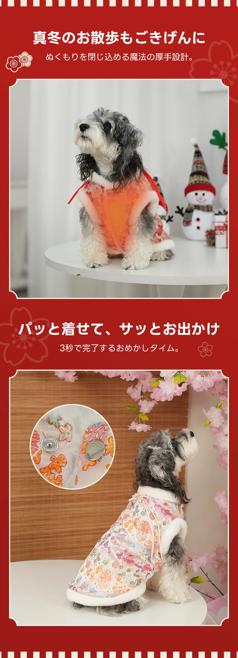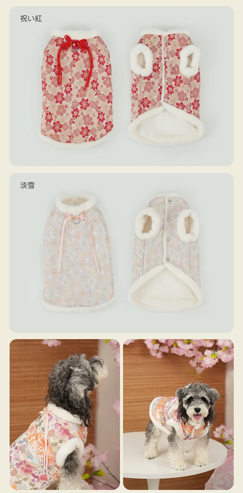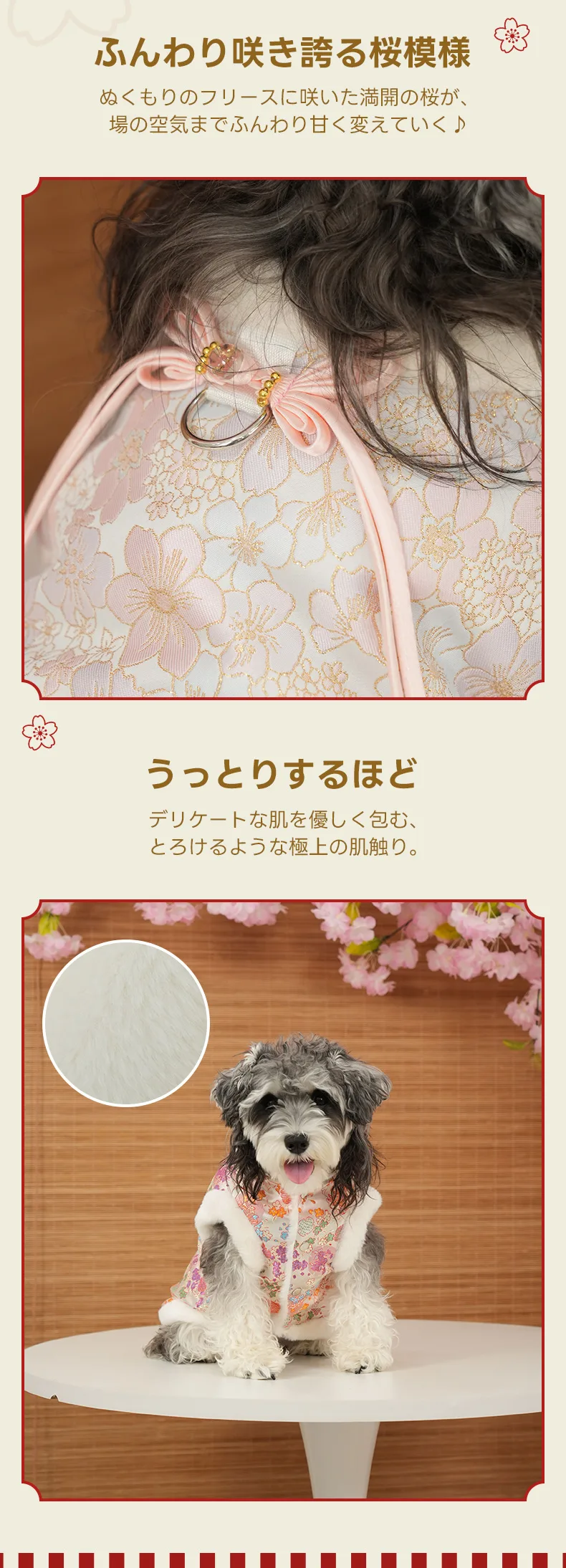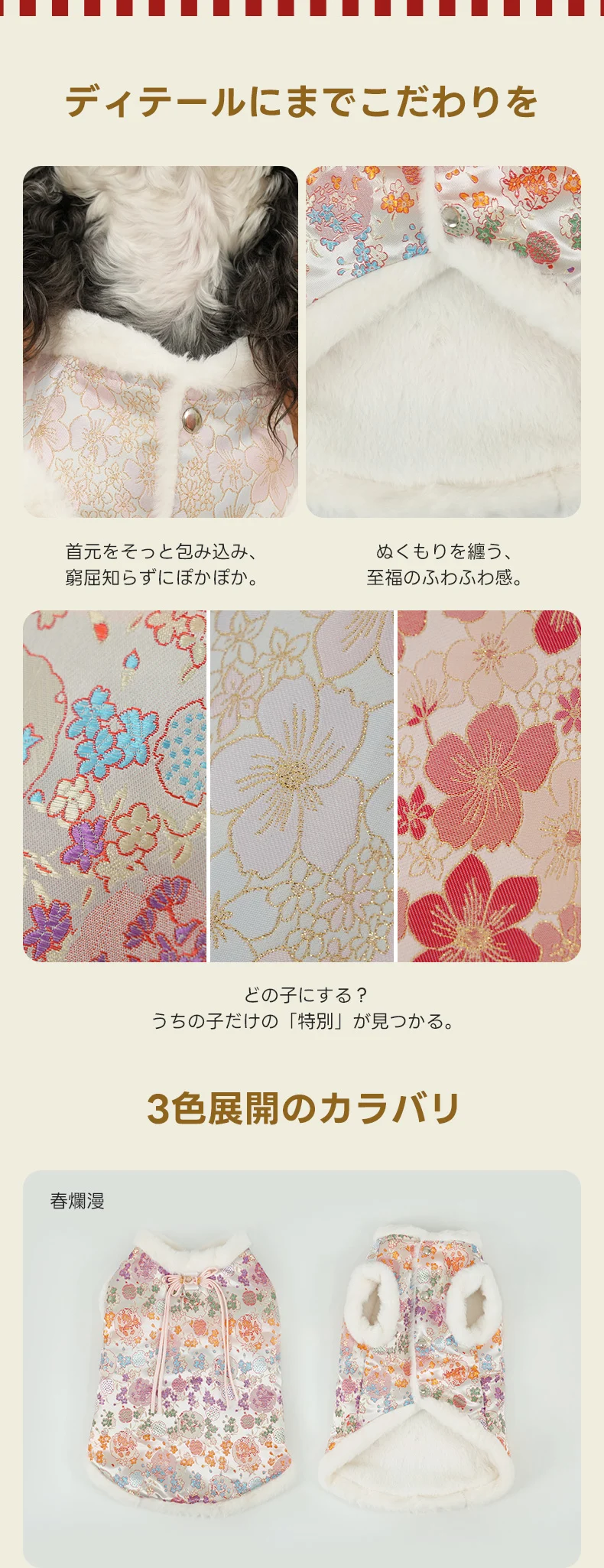 PETTENA Select ペット服 ぬくもりファーベスト 3色展開桜柄