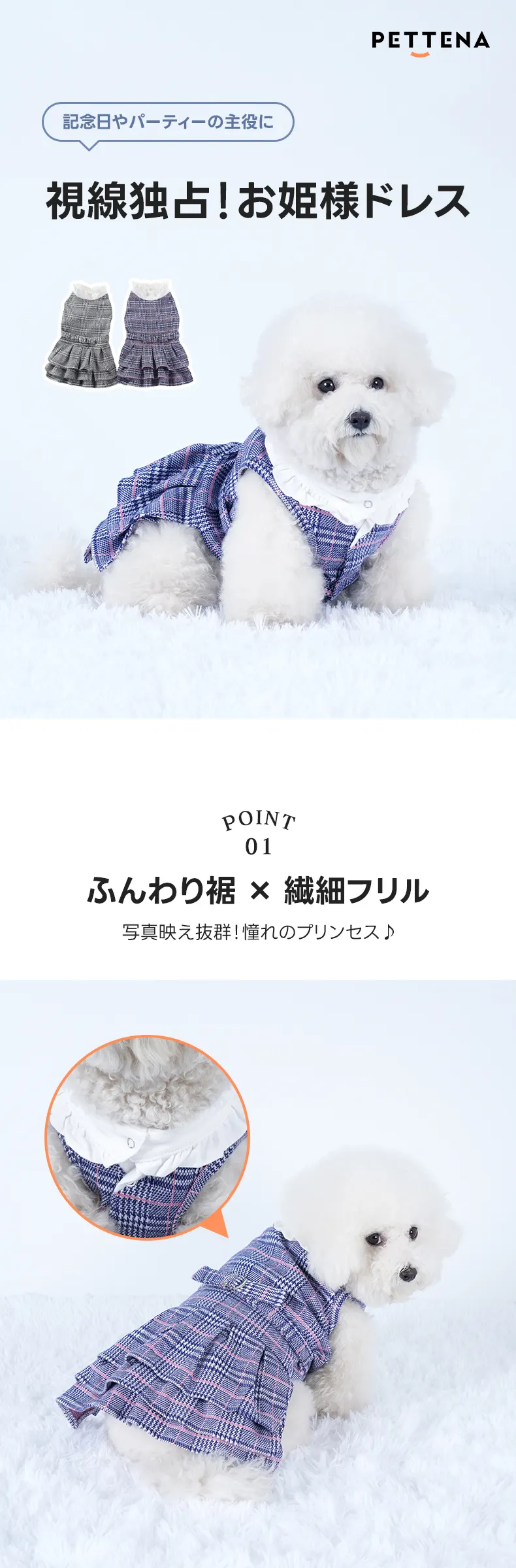 PETTENA ペット服 お姫様気分のチェックフリルドレス 小型犬用