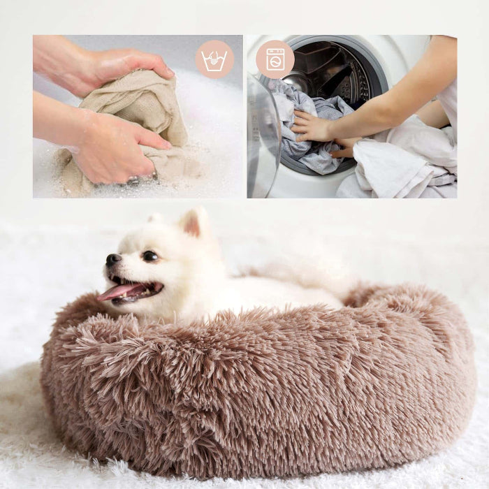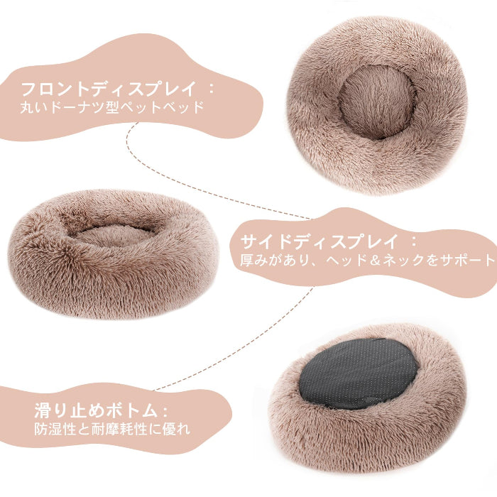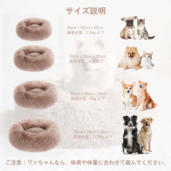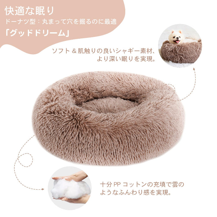 【フワフワ】この猫ベッドの表面は4CMのシャギー製長毛素材となり、ぽかぽかで肌ざわりよくてあったかいです。快適で柔らかい、滑らかな手触りのペットベッドです。丸型はある程度で体を包み込むような暖かさを提供しており、ペットちゃんに暖かい環境を与えます。底部と側面に綿が程よく詰まっているので気持ちよくリラックスして休めます。