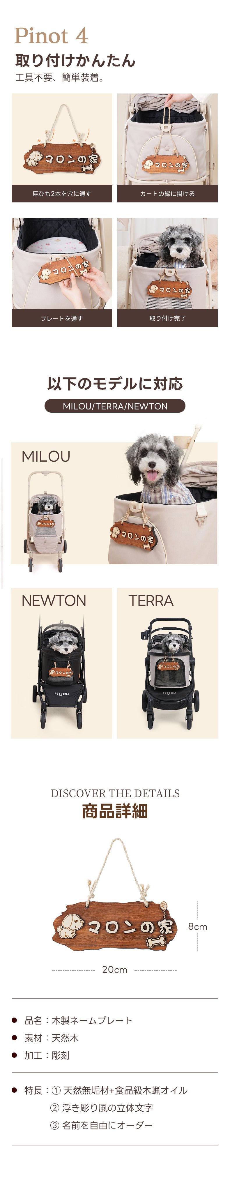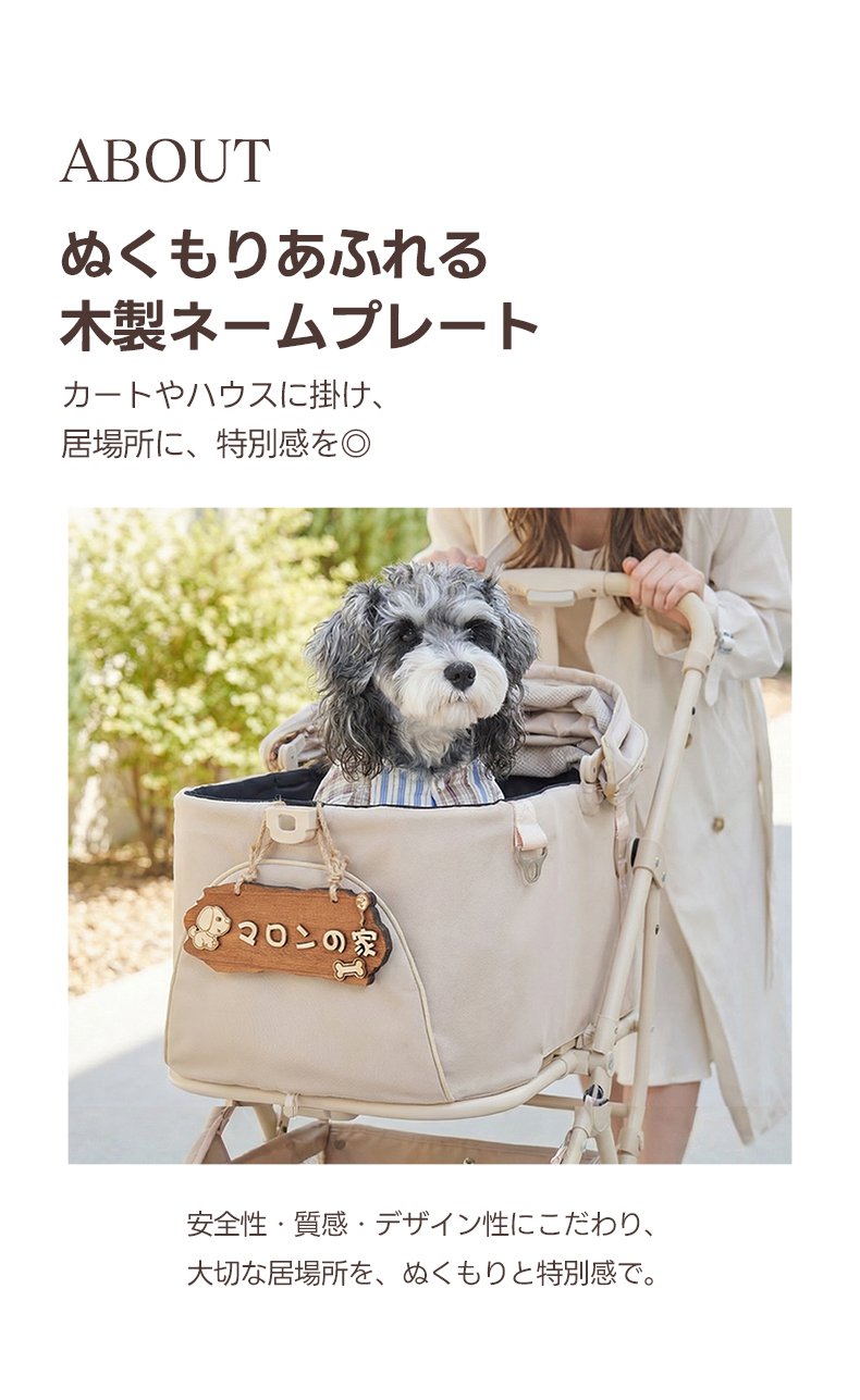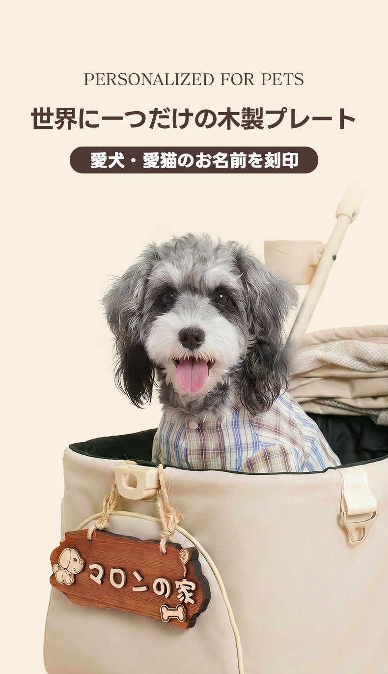 PETTENA 天然木 ネームプレート ペットカート用 3D立体文字 安全素材