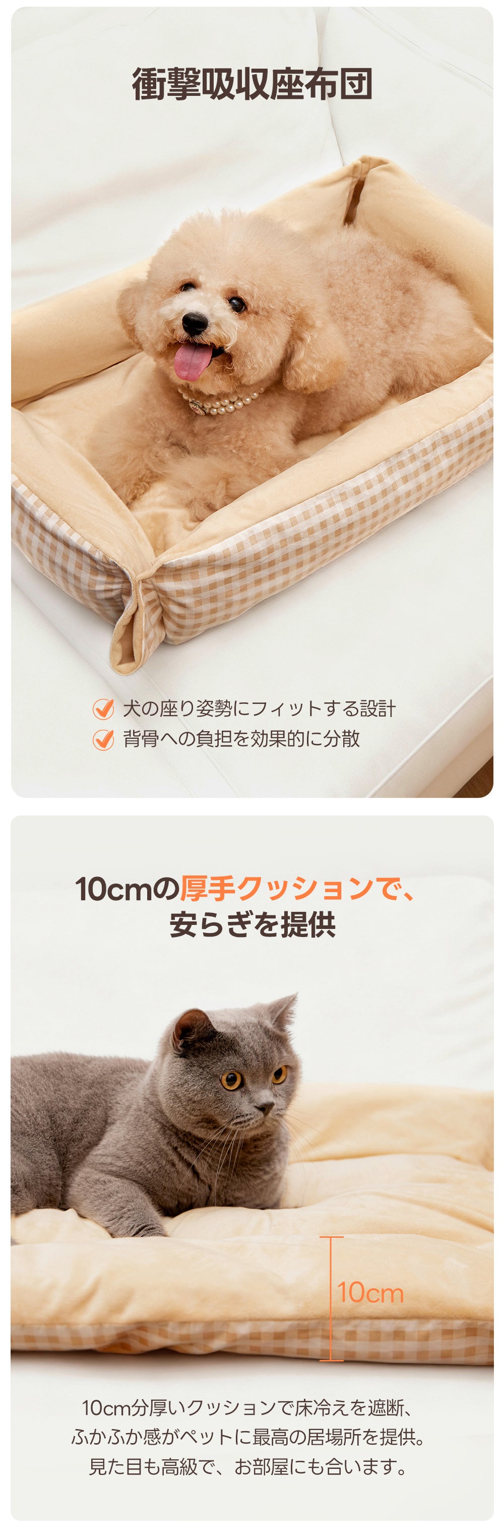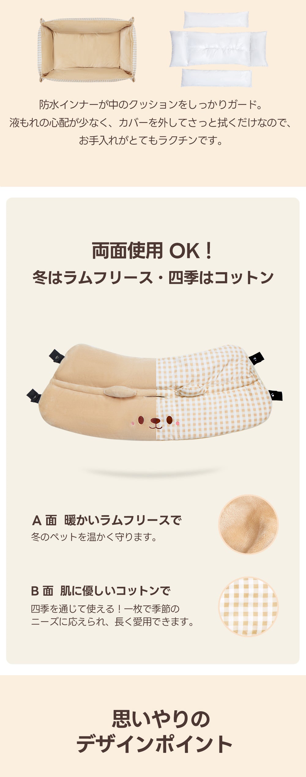 日本規格のIPX4強力防水機能を搭載しており、液体がクッションに浸透することを防ぎ、常に清潔で乾いた状態を保てます。万が一の雨でも、愛犬の体が濡れることなく快適に過ごせます。