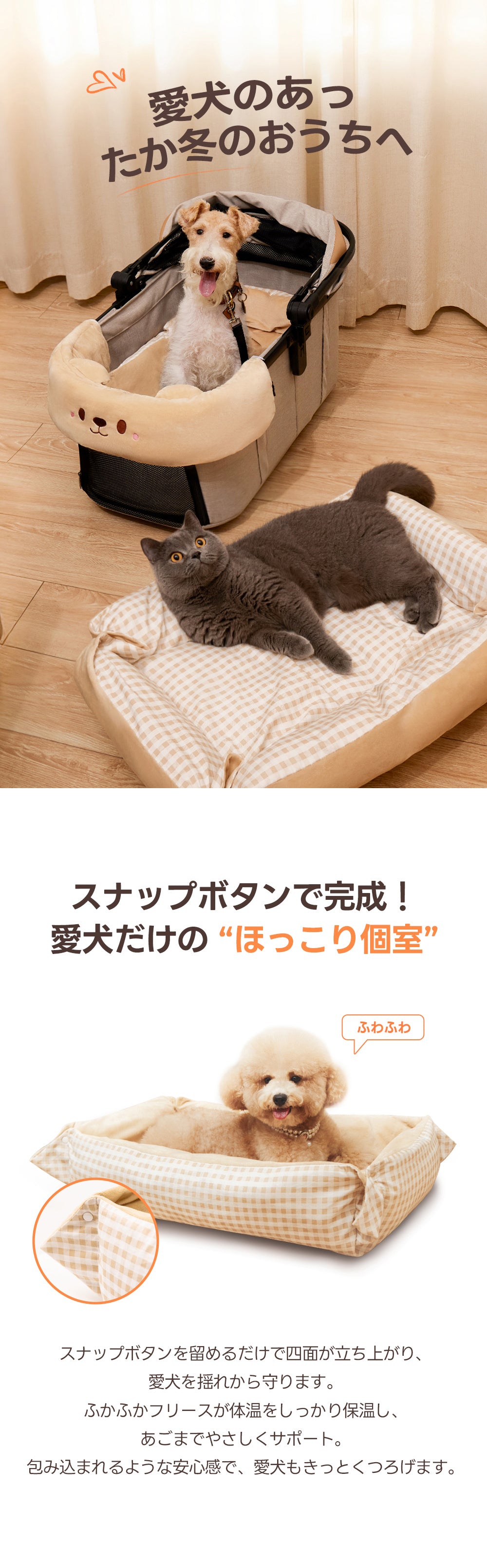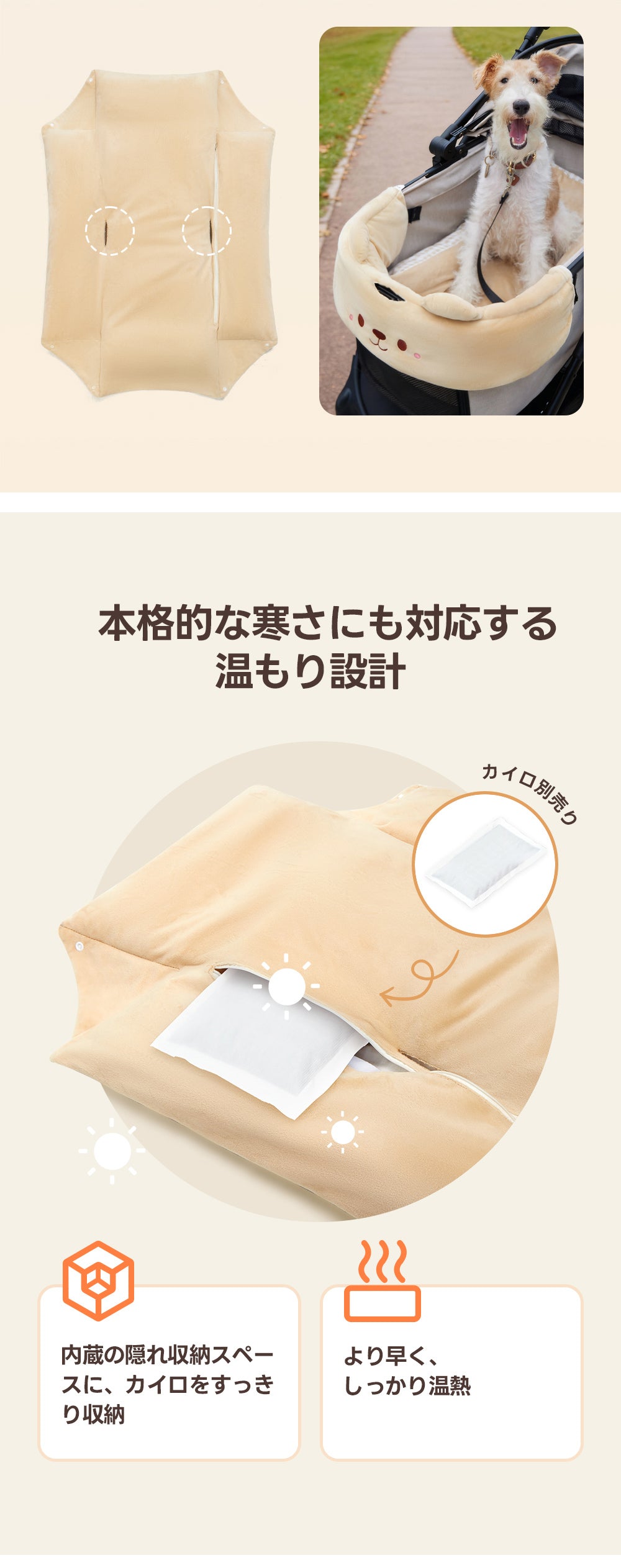 愛犬のために特別に設計されたこのクッションは、中型犬に最適なサイズと機能を兼ね備えています。寒い季節でも、快適にお出かけできるようにデザインされており、愛犬との毎日をサポートします。