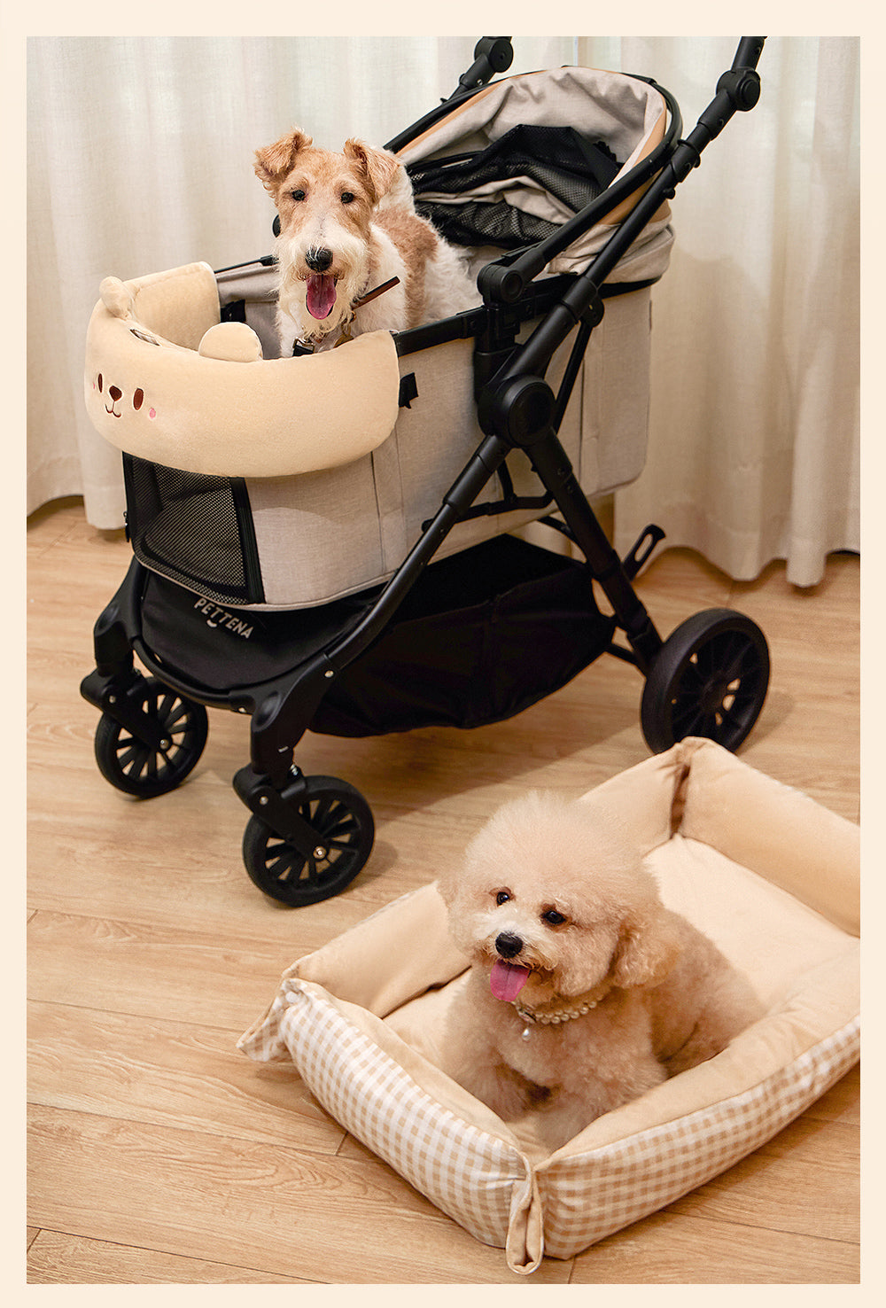 10cmの厚手クッションが、愛犬にしっかりとしたサポートを提供します。長時間の移動やお出かけ中でも、快適で安らかな姿勢を保ち、疲れを軽減します。ペットカートでの長時間の使用でも、愛犬がリラックスできる心地よい空間を提供します。