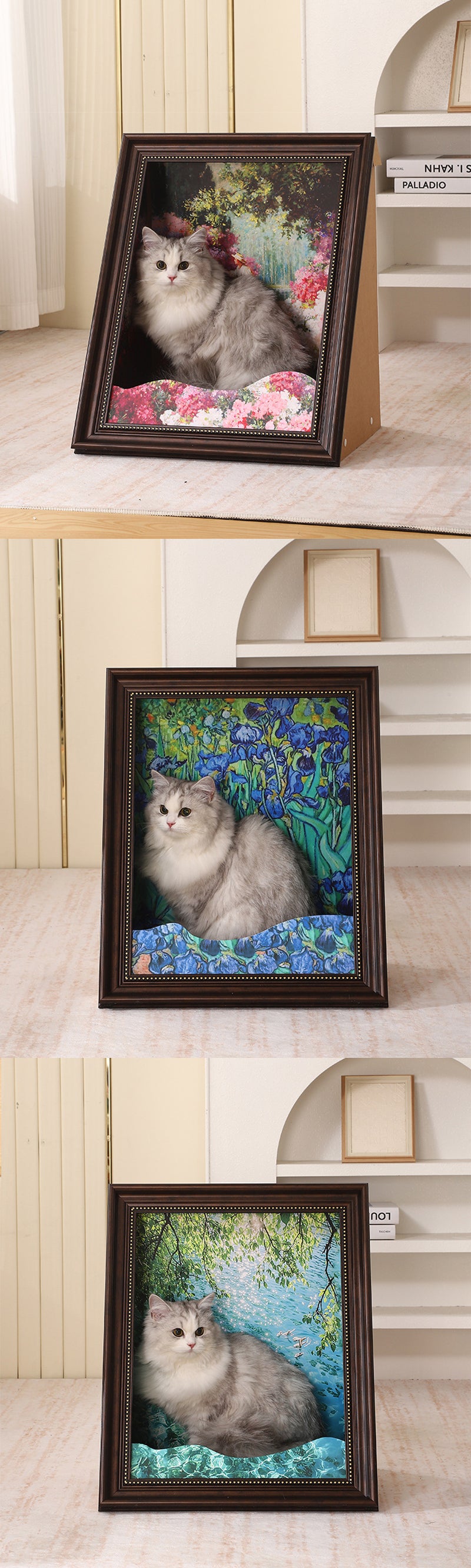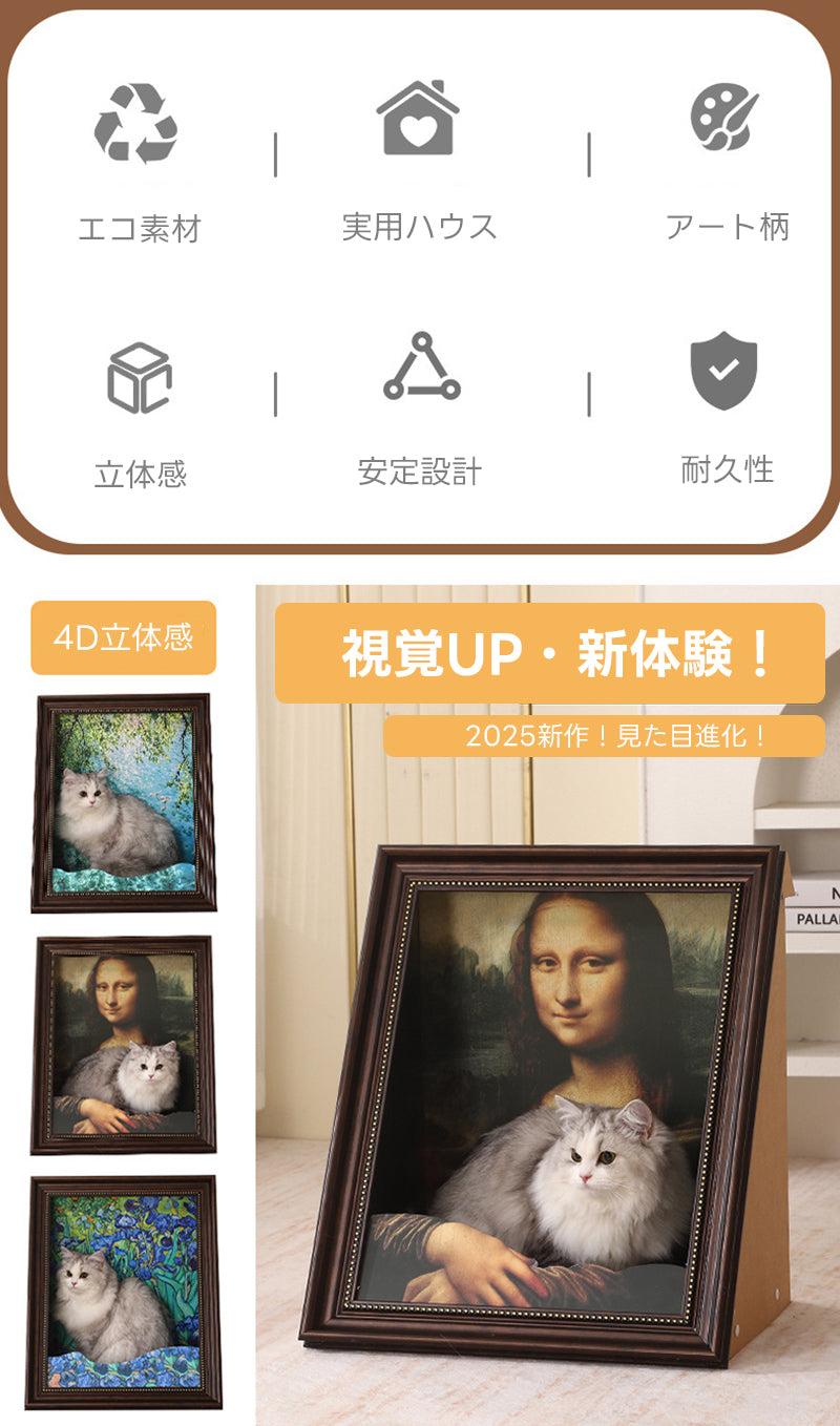 🖼️ 名画を再現したデザイン:モナリザや名作アートが猫ハウスに!