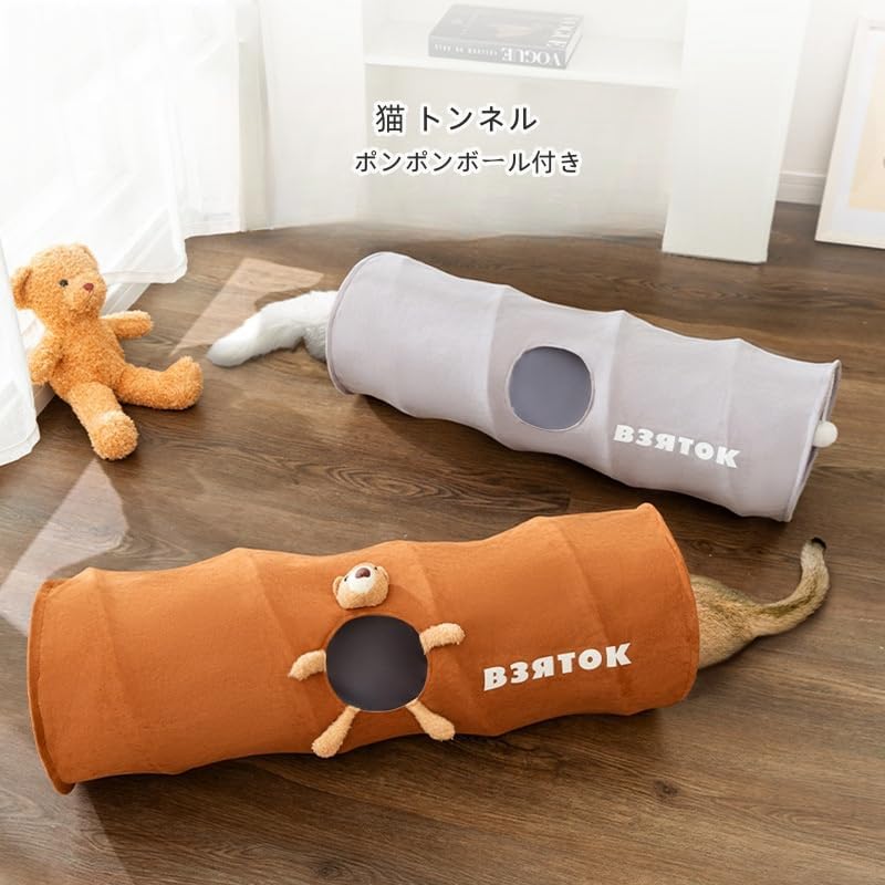 🐾折りたたみ式キャットトンネル(ポンポン付き)🐰🐱