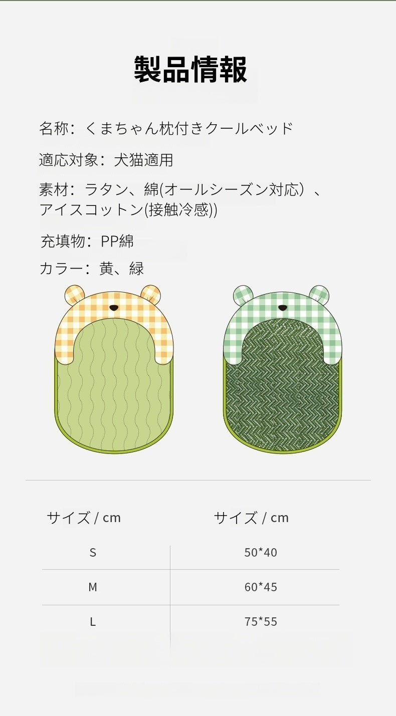 PETTENA Select くまちゃん枕付きクールベッド