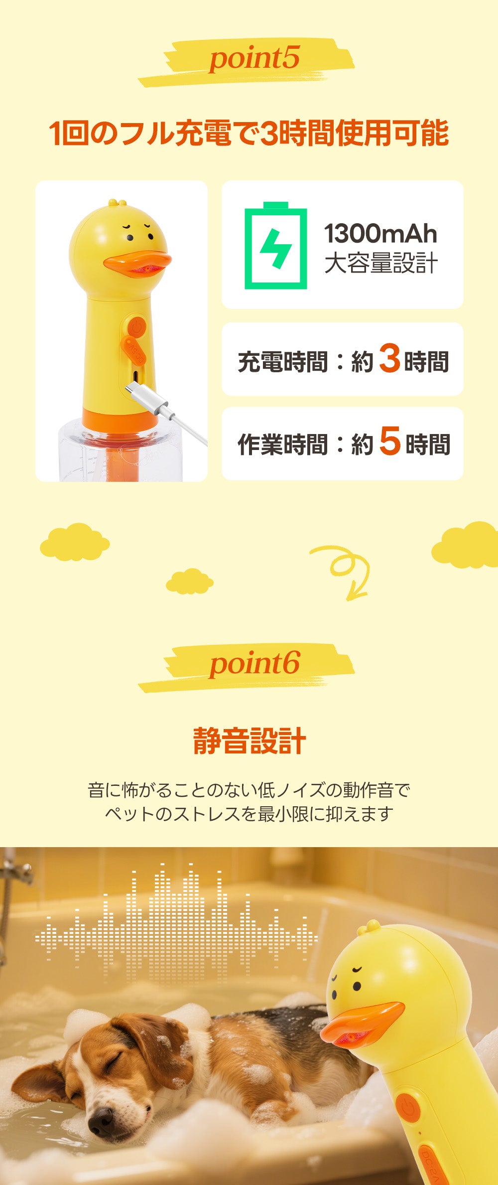 🚿 IPX7防水&静音設計:音に敏感なペットも安心、丸洗いもOK