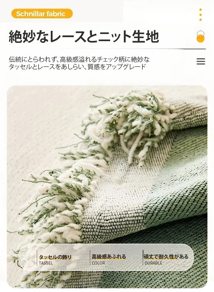 ニットの風合いと裾のフリンジが、インテリアに新しい表情をプラス。お部屋をぐっとおしゃれに演出します。