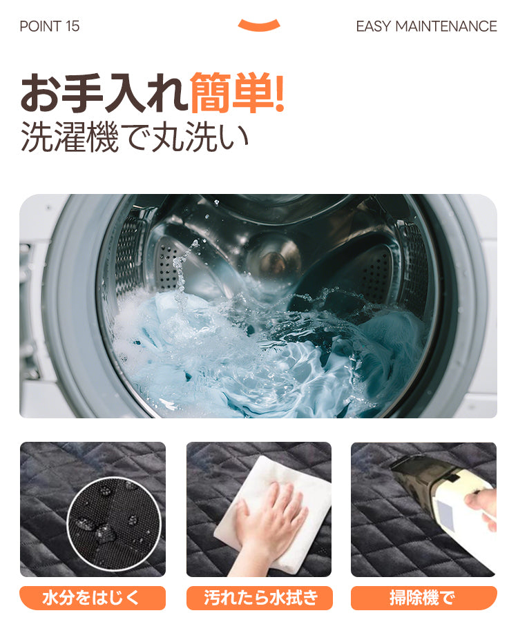 ・簡単清掃:タオル・掃除機・洗濯機対応